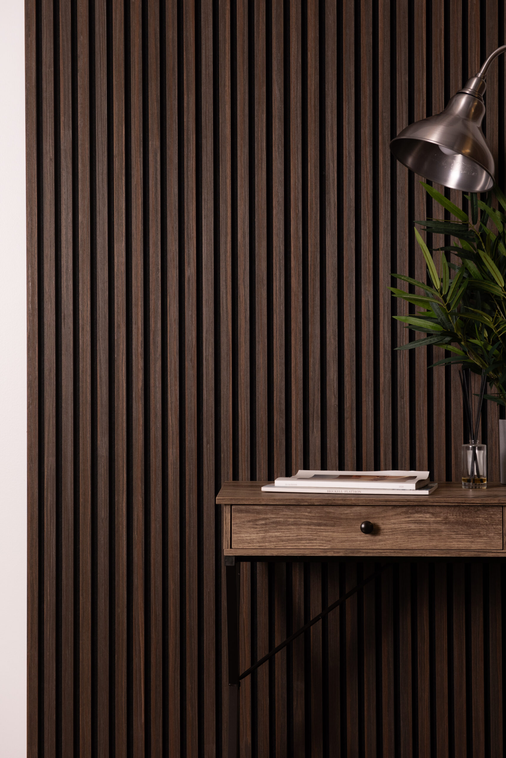 Each box contains two wide panels that seamlessly join next to each other. Deep, rich tones define Charcoal Oak slat wood wall panels, perfect for creating cozy yet modern spaces. Made from real wood veneers, these interior wood panels feature a 360-degree color view and are double the width of standard panels.