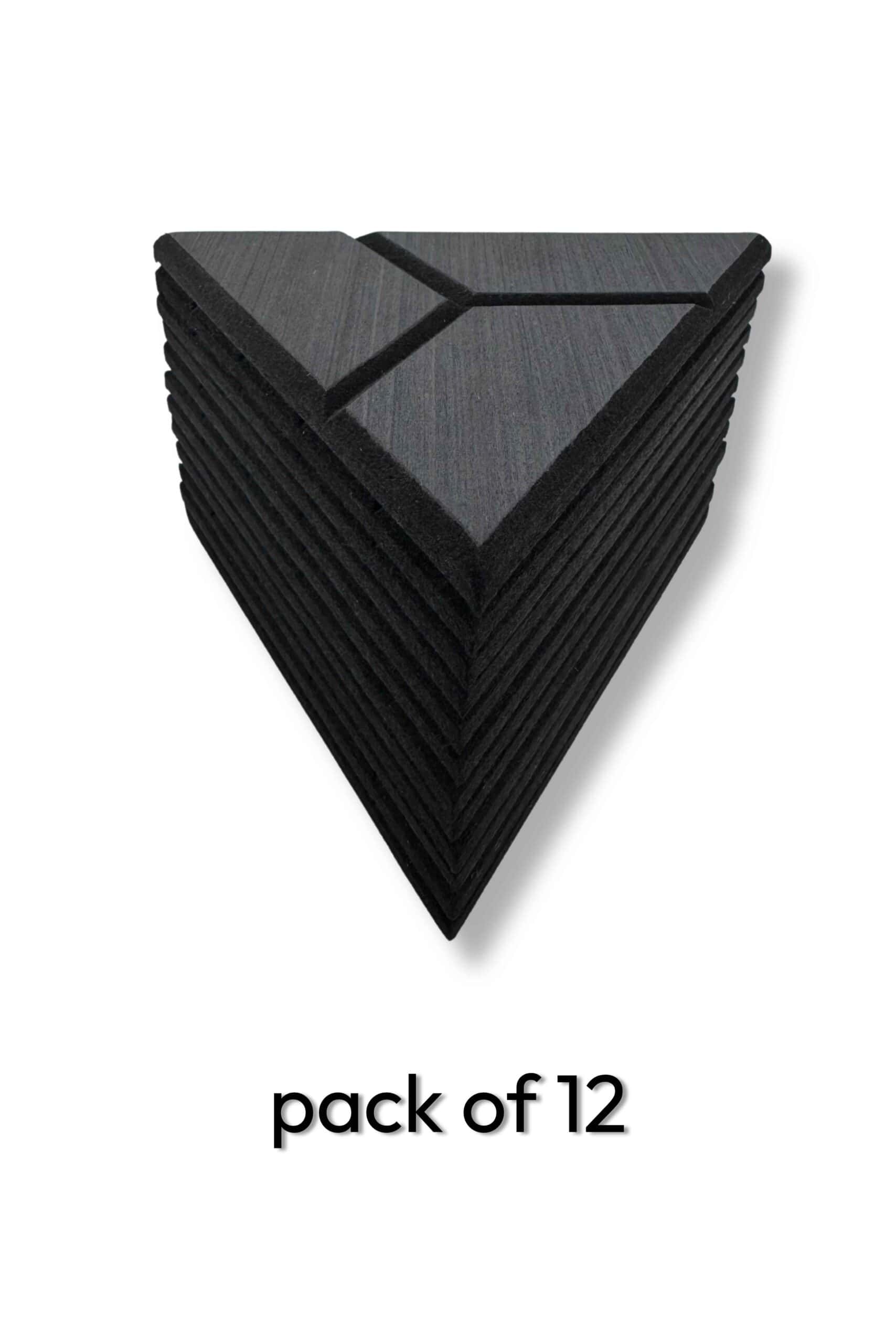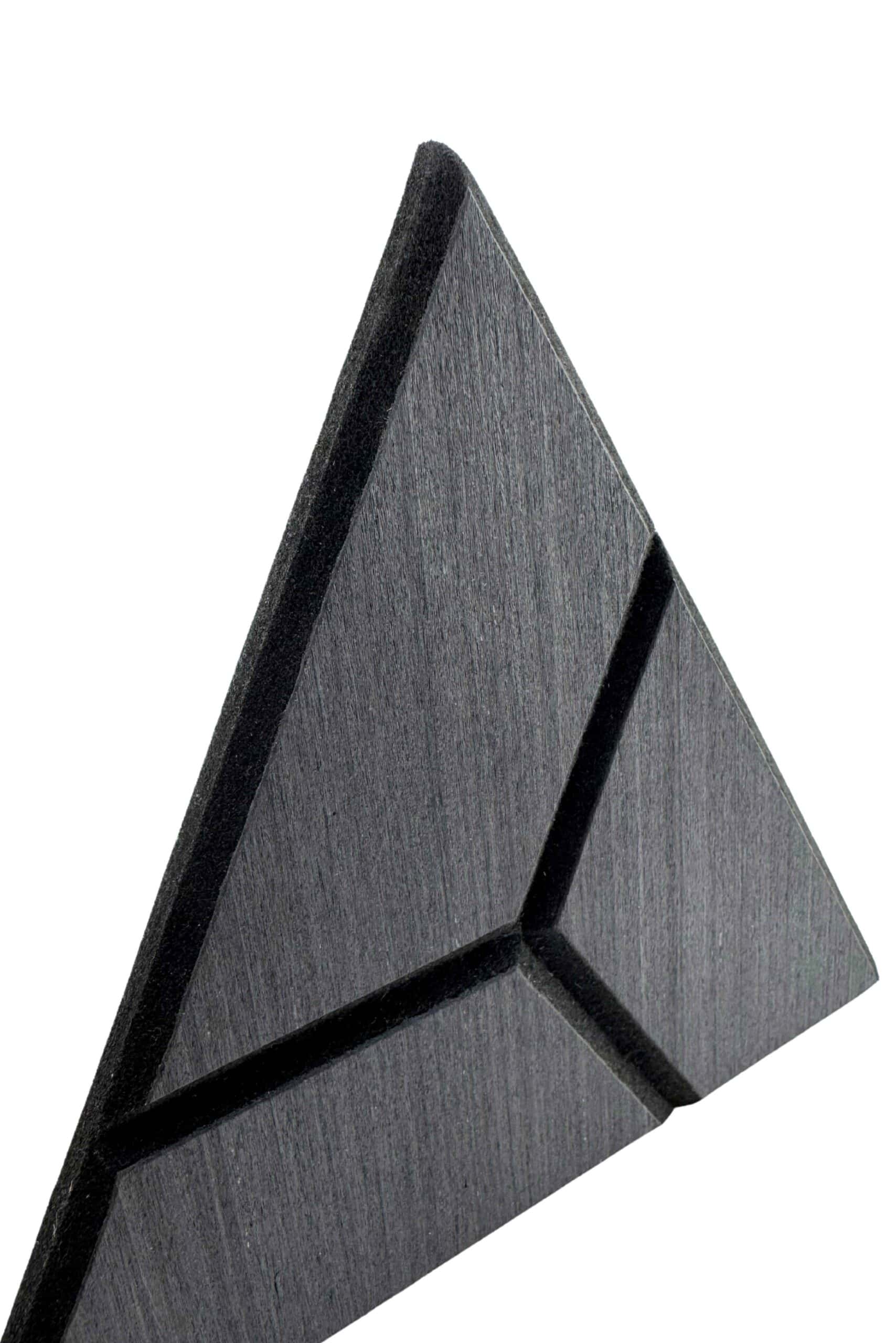 The GeoTri Black Onyx acoustic panel transforms ordinary walls into striking focal points while improving acoustics. Measuring 7 7/8″ × 6 ¾”, its geometric pattern is engineered to absorb sound and control echo, making it ideal for spaces that demand both performance and style. The rich black onyx finish creates a modern, sophisticated look that works beautifully in residential and commercial interiors.